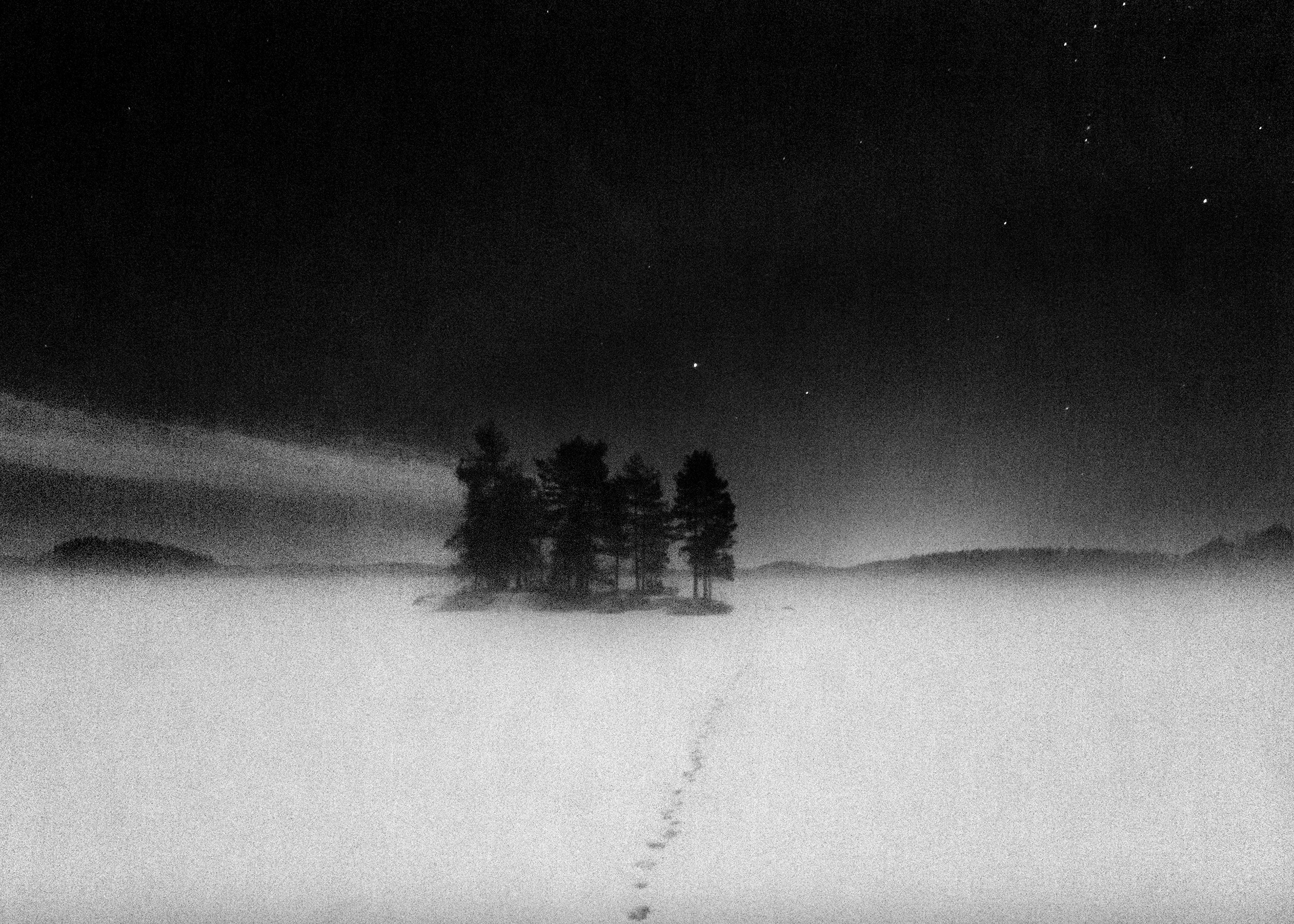 Olen tyhjästä erämaahan ilmestynyt Travis. Lapsen etsivä katse kasvoillani. Haukka liitää kallionkielekkeelle. Nukun kiviluolassa Nansenin kanssa. Hyytävä kylmyys kangistaa raajani. Lumihiutaleet leijailevat. Samannäköiset kuin lapsena lahjaksi saadussa lasipallossa, jonka rikoin nähdäkseni onko sen sisällä oikeasti talvi. Herään teltasta, puen untuvatakin ja ryömin ulos. Unenpöpperöinen kosmonautti valtavan lumiaavikon laidalla. Yksinäinen eläin on kulkenut yöllä valkoisen aukion halki.